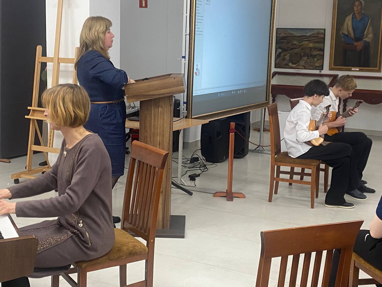17 февраля в Симферопольском художественном музее прошло мероприятие, приуроченное к празднику Масленица. Обучающиеся отдела народных инструментов приняли участие в концерте: Плисюк Михаил, Тригубец Ярослав (домра, преподаватель Рухлина Светлана Анатольевна, концертмейстер Ченакал Оксана Валериевна), Ильенко Мироний, Терещенко Тимофей, Акуфенко Ярослава, Мураев Егор, Соломяный Сергей, Гармаш София (балалайка, преподаватель Зеленюк Елена Федоровна, концертмейстер Заслуженный артист Республики Крым Маркелов Михаил Юрьевич). Юных исполнителей тепло встречали аплодисментами. Прозвучали обработки народных песен.